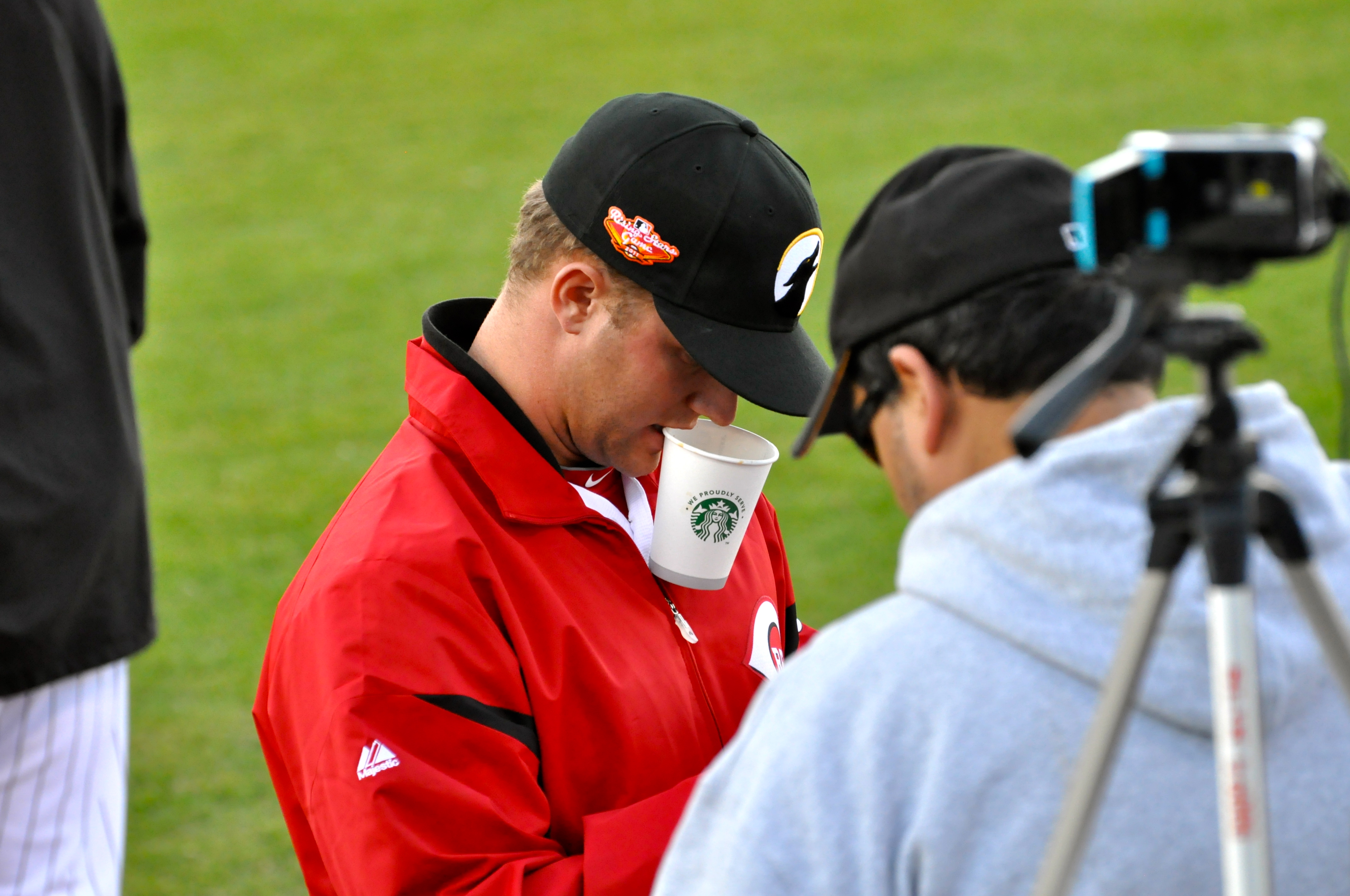Nothing has really changed here except for the cold weather. I finally had to start wearing sleeves so that should tell you something. I also need some advice on some very good pranks to pull. I have a good friend on my team here in the AFL, Joe Mahoney, and he seems to be the best “pranksman” as he likes to call himself. Each and every day he pulls some kind of small prank on someone. However, yesterday when I got to the field I sensed something. I started to get ready for BP and looked down to put my shoes on and what did I find? He just decided to take the shoe laces out of every single shoe in my locker. Yeah, a small little prank, but just enough to start a war. So, when he went out to BP, I stayed behind for a couple of minutes. I took his jeans that he wore to the field as well as his shirt and soaked them in water and put them in the freezer. He never realized his clothes were missing until after the game, so they had a good 5 or so hours to freeze!! Needless to say they were hard as a rock when I gave them to him after the game. All he said to me was “see you tomorrow Brian”, so I expect something pretty harsh today when I get to the field. I will definitely keep you guys posted with what all happens! We play our last night game tonight and I believe it will be televised on MLB network if any of you are bored and would like to watch!