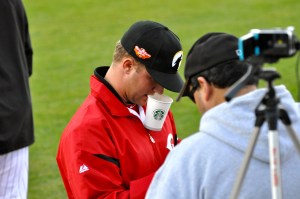 Saturday’s Rising Stars game was an incredible experience. I was pretty excited to be on the winning team, and it was great to see a packed house at the Surprise Stadium. Anybody who had the chance to check out the game on the MLB network probably noticed that all of the players and fans were pretty bundled up. The temperatures plummeted on Saturday and it was a chilly 50 degrees at game time. One of my favorite parts of the clubhouse during the game was the Starbucks coffee machine. It definitely helped keep me warm.